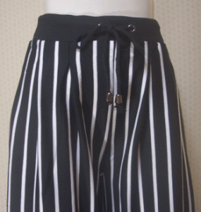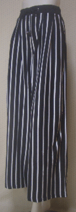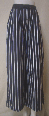 【レディス ストライプ ワイドパンツ】【旅&カジュアル】ウェスト平ゴム&スピンドル、はき心地&落ち感綺麗カットソー<10分丈>ガウチョパンツ<黒×オフ白ストライプ:MーL:総丈約94cm>【スカーチョ】【パンタクール】【旅パンツ】